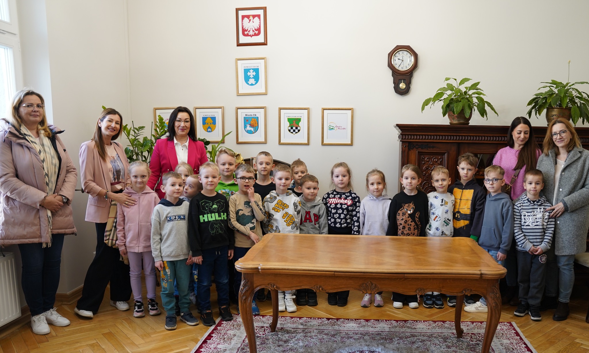 9 kwietnia 2025 r. dzieci z grupy Pszczółki odwiedziły Starostwo Powiatowe w Ełku. Wicestarosta Małgorzata Kopiczko oprowadziła dzieci po urzędzie i opowiedziała, jakie zadania realizuje powiat ełcki. Pokazała również przedszkolakom herby gmin leżących na terenie powiatu oraz mapę rowerową powiatu ełckiego. Dzieci z zainteresowaniem oglądały mapę i szukały ciekawych miejsc, które będą mogły z rodzicami odwiedzić w powiecie.