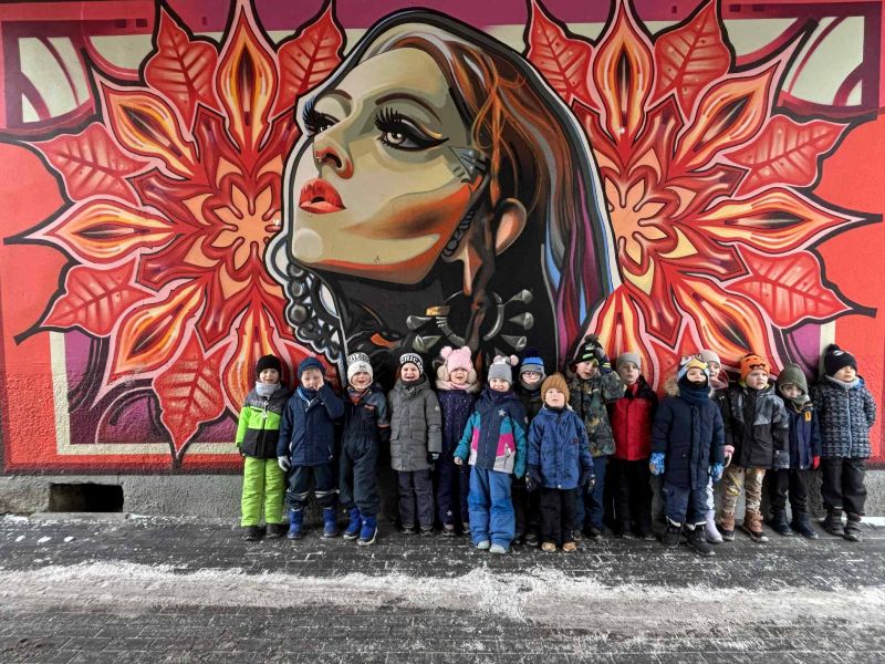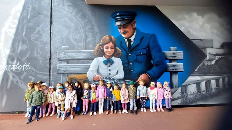 Dzieci ze wszystkich grup wyruszyły na wędrówkę ulicami miasta, odwiedzając wybrane murale przedstawiające ważne wydarzenia, postacie i symbole związane z lokalną oraz narodową historią. Każdy przystanek był okazją do zatrzymania się, uważnego spojrzenia i odkrywania znaczeń ukrytych w barwnych obrazach.
