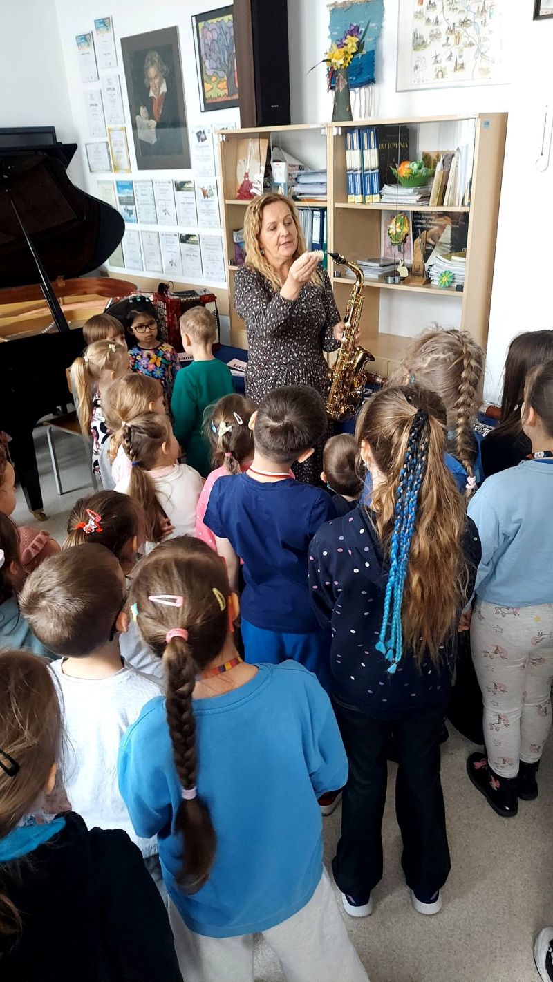 Na miejscu przywitali ich młodzi muzycy – uczniowie szkoły, którzy z dumą zaprezentowali swoje umiejętności podczas specjalnie przygotowanego koncertu. Dzieci z zapartym tchem słuchały brzmienia fortepianu, skrzypiec, wiolonczeli i wielu innych instrumentów.