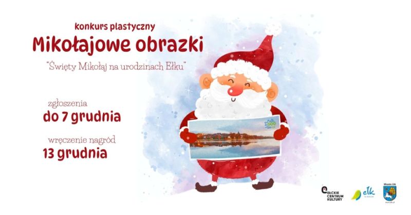 Co roku, dzieci z naszego przedszkola biorą udział w konkursie organizowanym przez Ełckie Centrum Kultury pt. “Mikołajkowe obrazki”. Tym razem tematem przewodnim był: Święty Mikołaj na urodzinach Ełku.