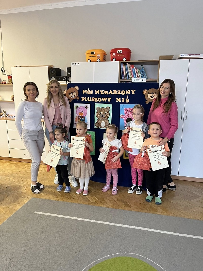 26.11.2025 r odbyło się rozwiązanie wewnatrzprzedszkolnego konkursu plastycznego „Mój wymarzony pluszowy miś”. Wszystkie dzieci, biorące udział w konkursie zostały nagrodzone: