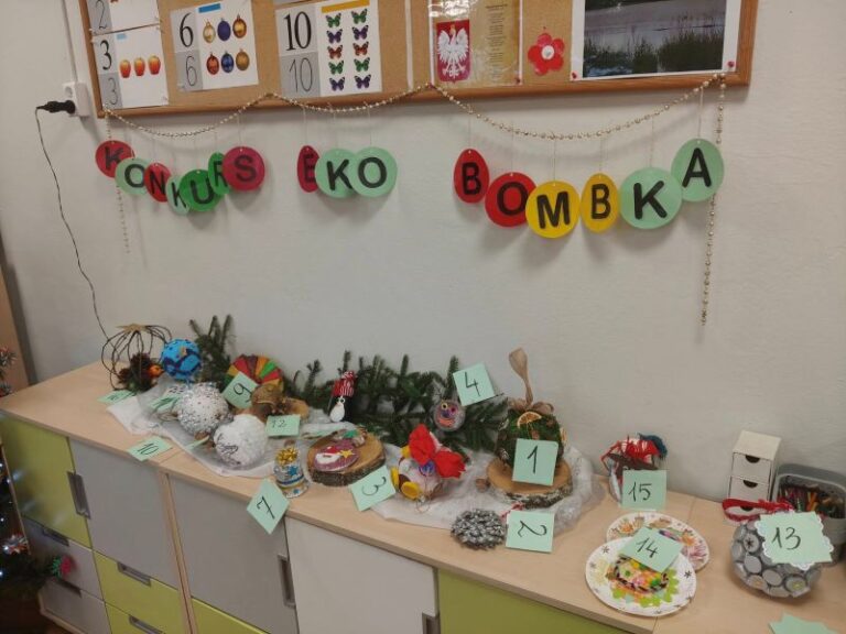 9 grudnia nastąpiło rozstrzygnięcie konkursu Eko Bombka organizowanego dla dzieci z naszego przedszkola. W konkursie wzięło udział 16 uczestników, którzy wykonali piękne ozdoby wraz ze