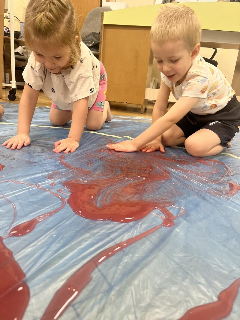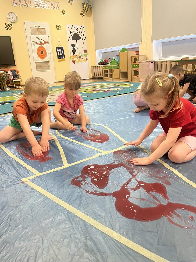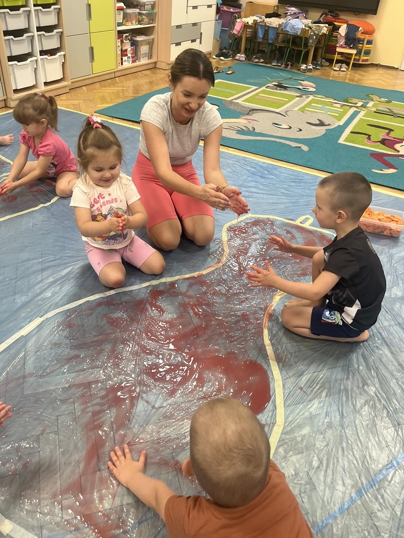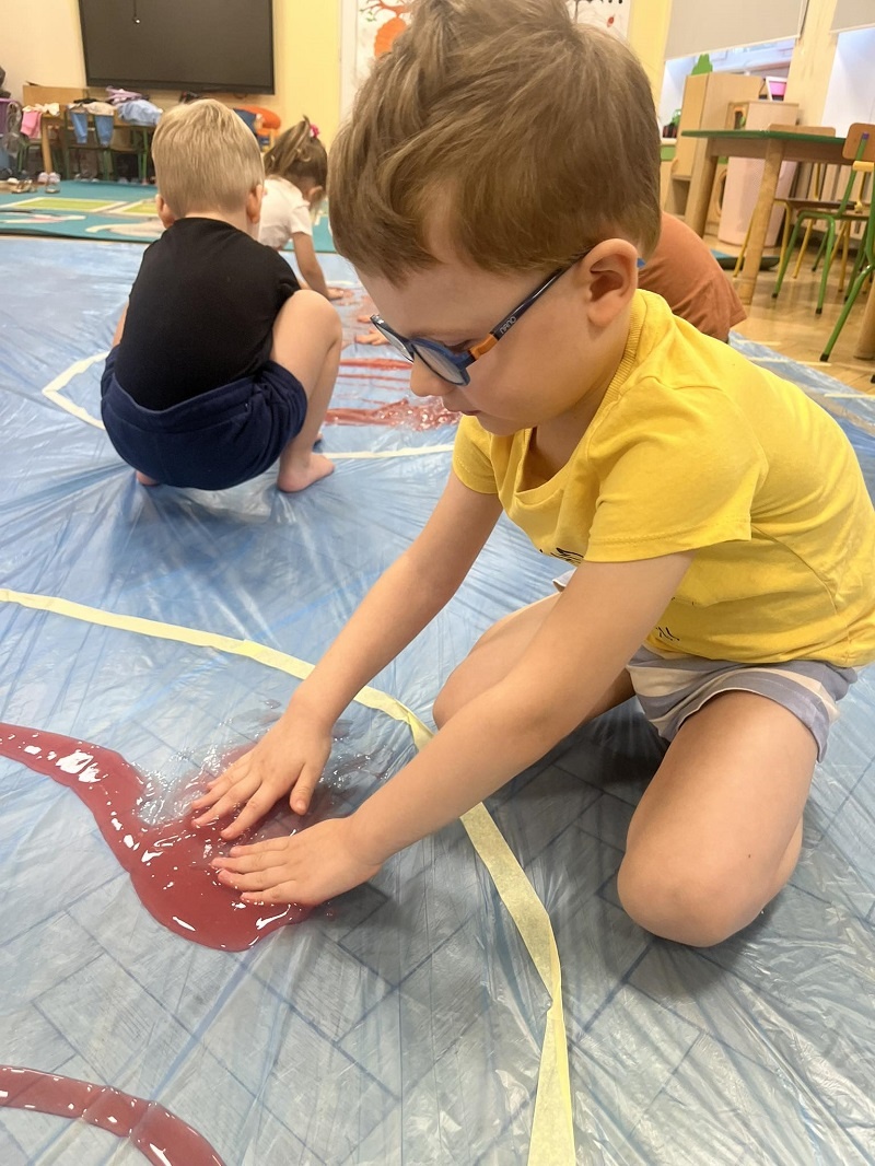 Od września w naszej najmłodszej grupie “Pszczółki” realizowana jest innowacja pedagogiczna pt.” Polisensoryczne zabawy dla przedszkolaków”. Zabawy sensoryczne to istotna forma aktywności, która pozwala dzieciom poznać świat poprzez bodźce zmysłowe. Dzisiaj odbyły się zabawy z kisielem. To wyjątkowy produkt, który idealnie sprawdza się w kreatywnych zabawach.
