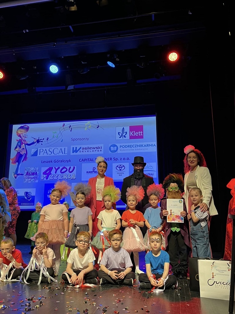 18 kwietnia 2024r. zespół taneczny dzieci z naszego przedszkola w składzie: Mieszko Wasilewski(Pan Kleks), Hania Dawidziuk (Ada), Maja Dobrenko, Ignacy Lewandowski, Alinka Rogala, Nikodem Bruliński, Klara Wilczyńska, Emilian Andziak, Marianka Mużyło, Mikołaj Bilski, Gabriela Łukaszewicz oraz Kornel Sikorski wziął udział w przeglądzie tanecznym „Muzyczna podróż z Panem Kleksem” ![]()