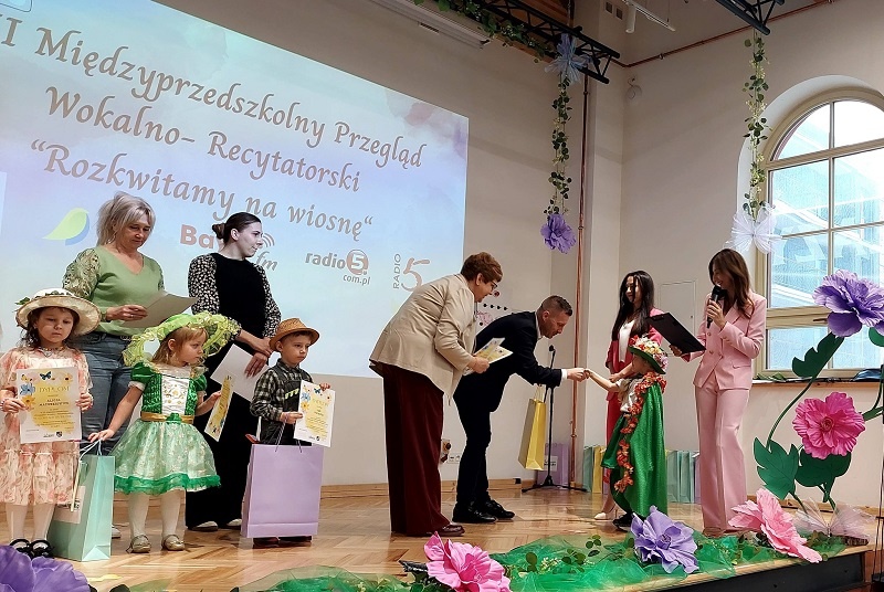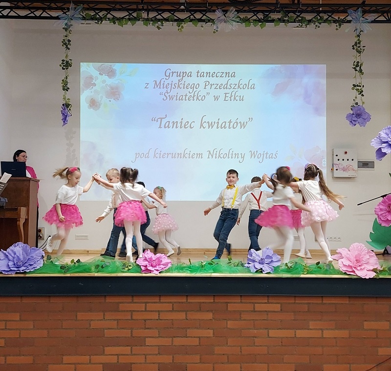 Młodzi artyści powitali nadchodzącą porę roku wierszami oraz piosenkami, wprowadzając wszystkich zgromadzonych w radosny, pełen kolorów i optymizmu nastrój. Całe wydarzenie uświetniły występy grupy tanecznej z Miejskiego Przedszkola Światełko w Ełku pod kierownictwem Pani Nikoliny Wojtaś.