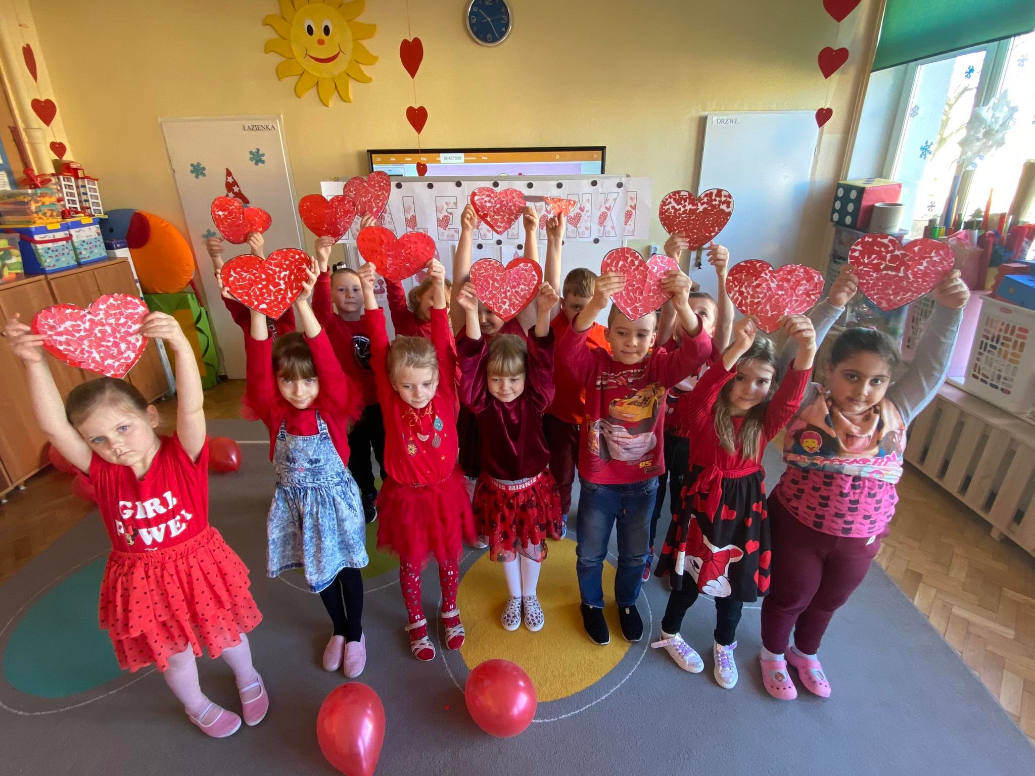 Dzisiaj obchodziliśmy w naszym przedszkolu “Walentynki”. Przedszkolaki wraz z wychowawczyniami tego dnia ubrały się na czerwono. Zajęcia tego dnia były odzwierciedleniem takich wartości jak: szczęście, miłość, przyjaźń i radość z przebywania ze sobą.