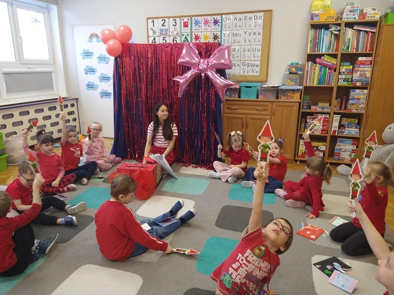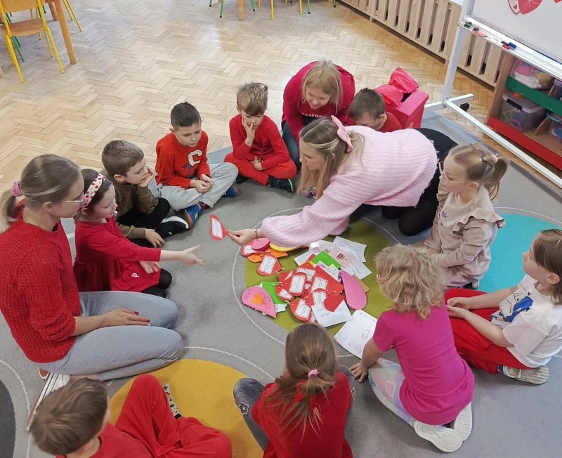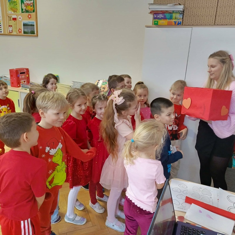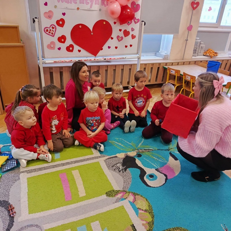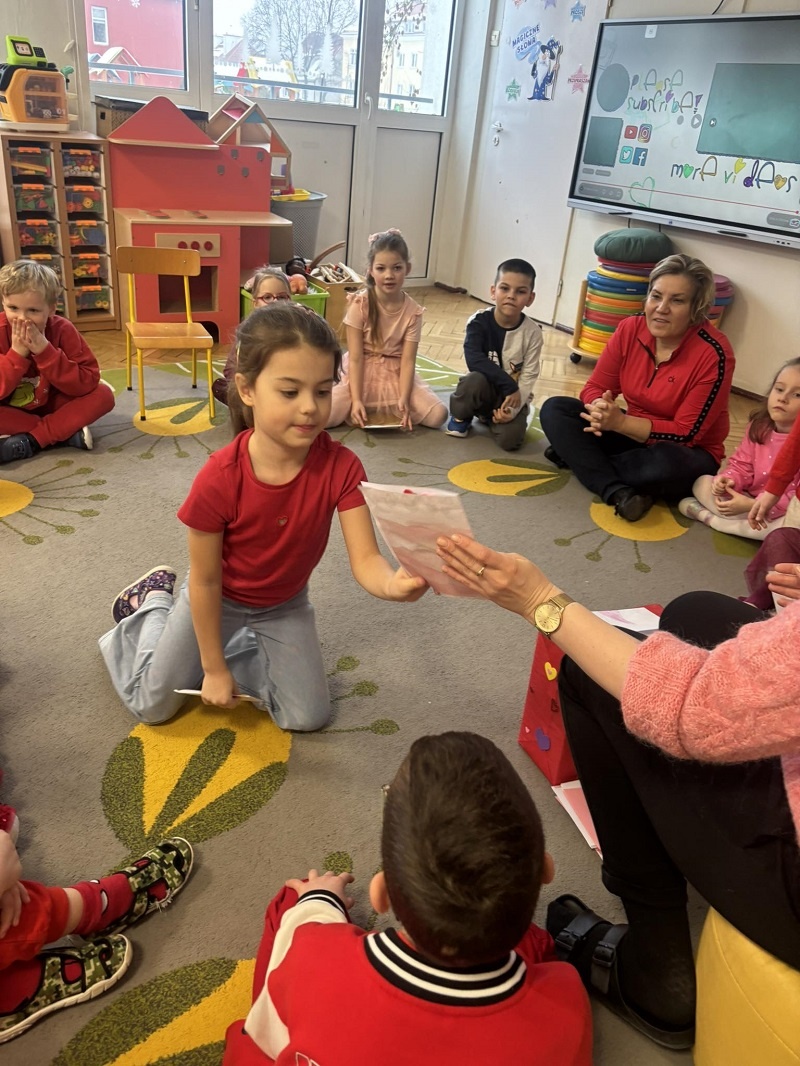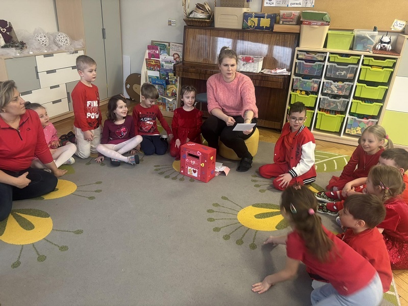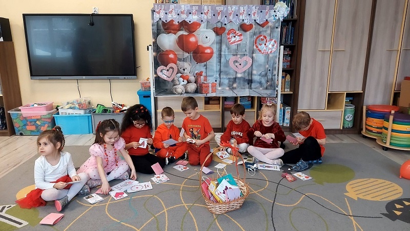 – święto Miłości- tego dnia w “Światełku” zrobiło się czerwono, słodko i miło za sprawą kartek i prezencików, którymi przedszkolaki obdarowały siebie i panie. Umililiśmy sobie ten dzień poprzez gry, zabawy, tańce i słodkie upominki.