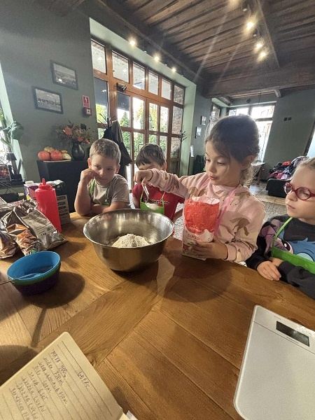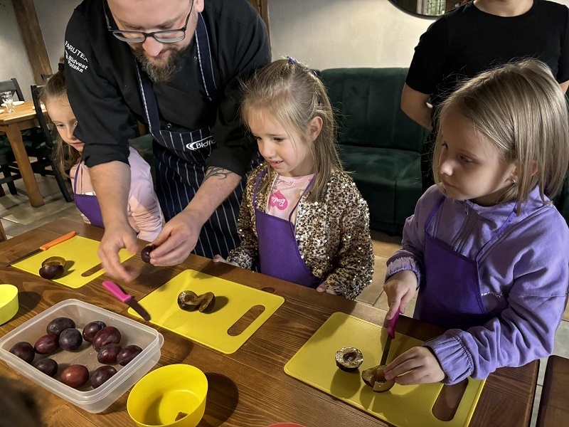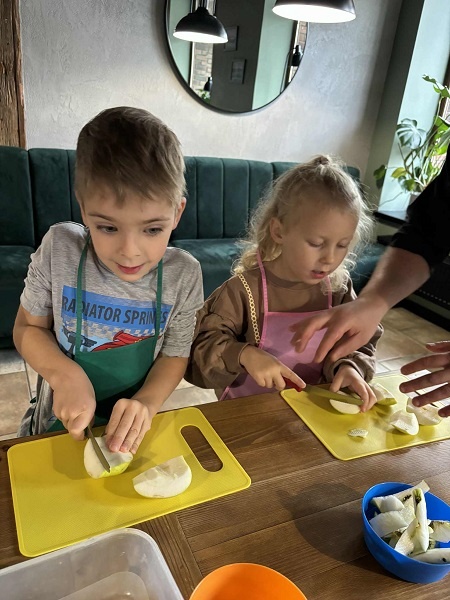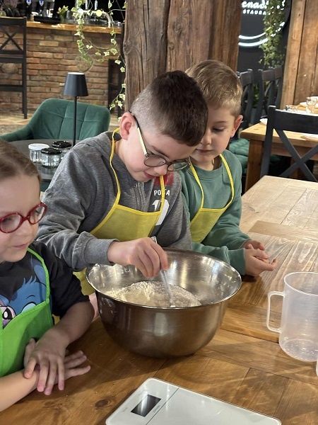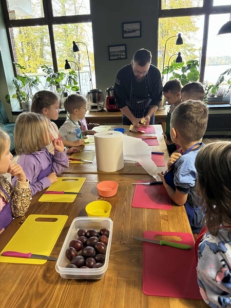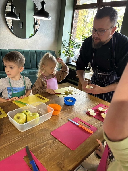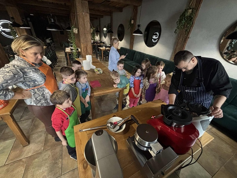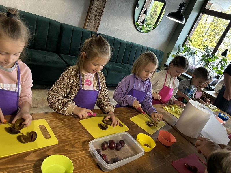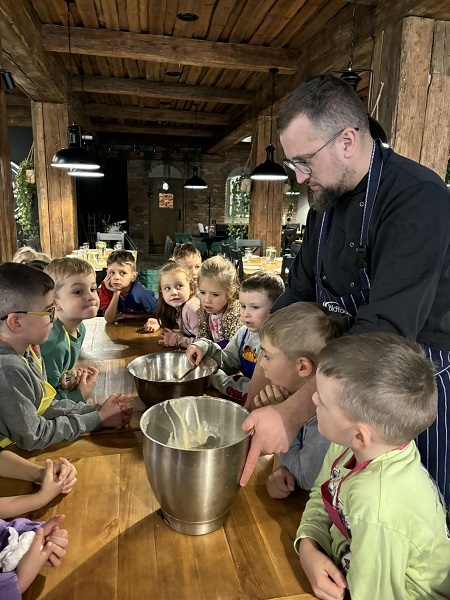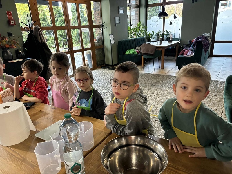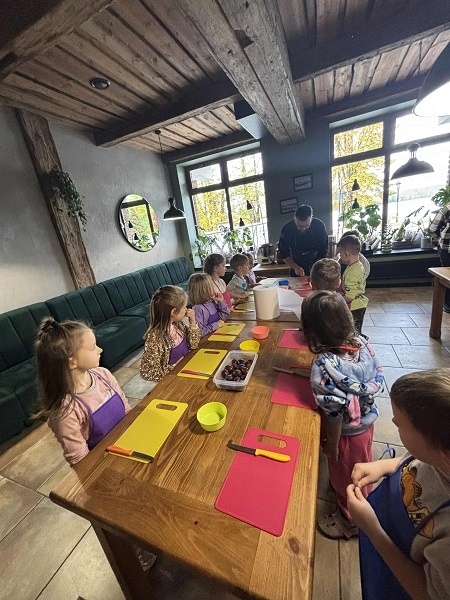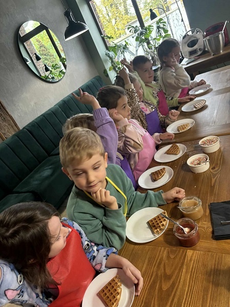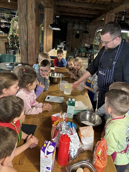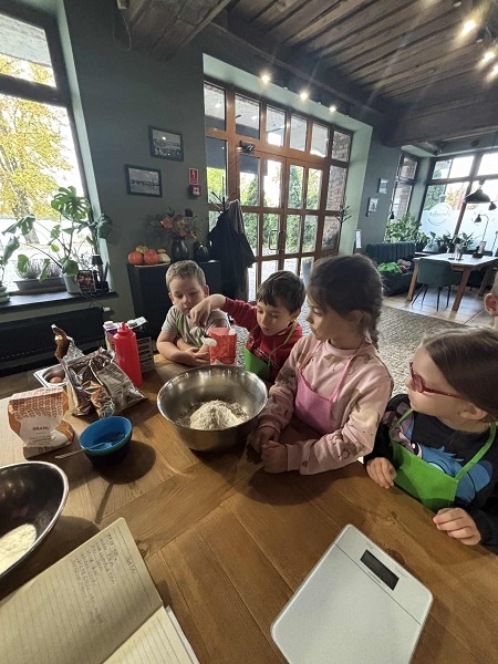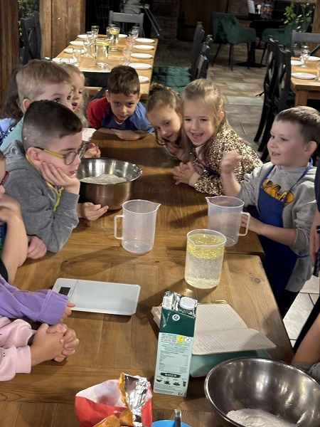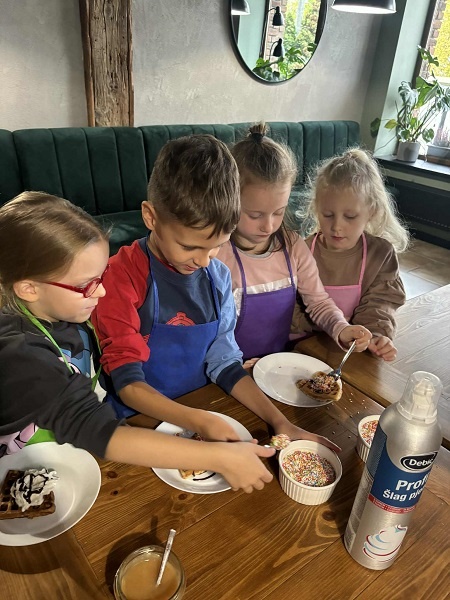 22 października dzieci z grupy Świetliki uczestniczyły w warsztatach kulinarnych pod okiem Szefa Kuchni z Restauracji „Promenada 8”. Mali kucharze przygotowywali konfitury śliwkowe i jabłkowe, a także wyrabiali ciasto na gofry, które później wspólnie wypiekali. Było dużo śmiechu, radości i kreatywności! Własnoręcznie wykonane gofry smakowały obłędnie.
