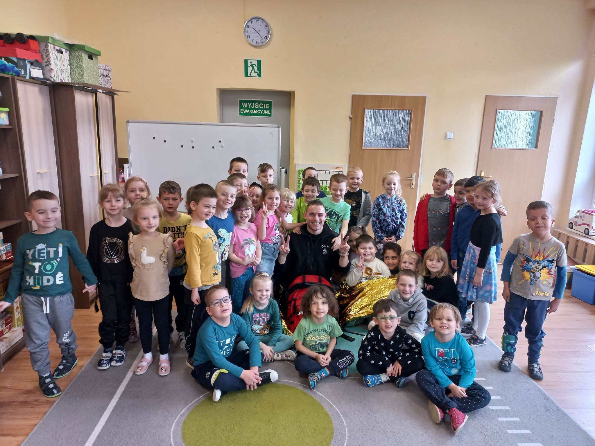 W dniu 7.03.2023 przedszkolaki gościły przedstawiciela z OSP Stare Juchy pana Karola Malinowskiego, który jest również instruktorem pierwszej pomocy w ramach realizacji programu doradztwa zawodowego W trakcie spotkania pan Strażak opowiedział o swojej pracy. Dzięki temu  spotkaniu  przedszkolaki poznały ciężką i odpowiedzialną pracę strażaka, dowiedziały się,  jak dbać o własne i innych bezpieczeństwo, poznały  sytuacje, w których powinny korzystać z numerów alarmowych. Przedszkolaki z chęcią zadawały pytania oraz z zaciekawieniem słuchały o zasadach pierwszej pomocy.