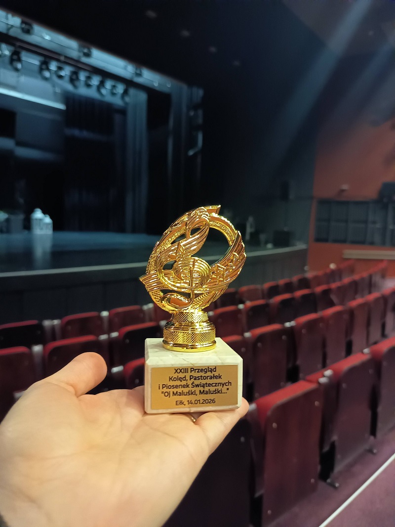 Podczas XXIII Dziecięcego Przeglądu Kolęd, Pastorałek i Piosenek Świątecznych ” Oj Maluśki, Maluśki” organizowanym przez Miejskie Przedszkole “Mali Odkrywcy ” w Ełku, nasze przedszkole reprezentowali Antoni i Iga z grupy “Motylki”. Dzieci otrzymały nagrody rzeczowe i dyplomy. W ramach podziękowania przedszkole otrzymało również statuetkę. Gratulujemy wykonawcom ![]()