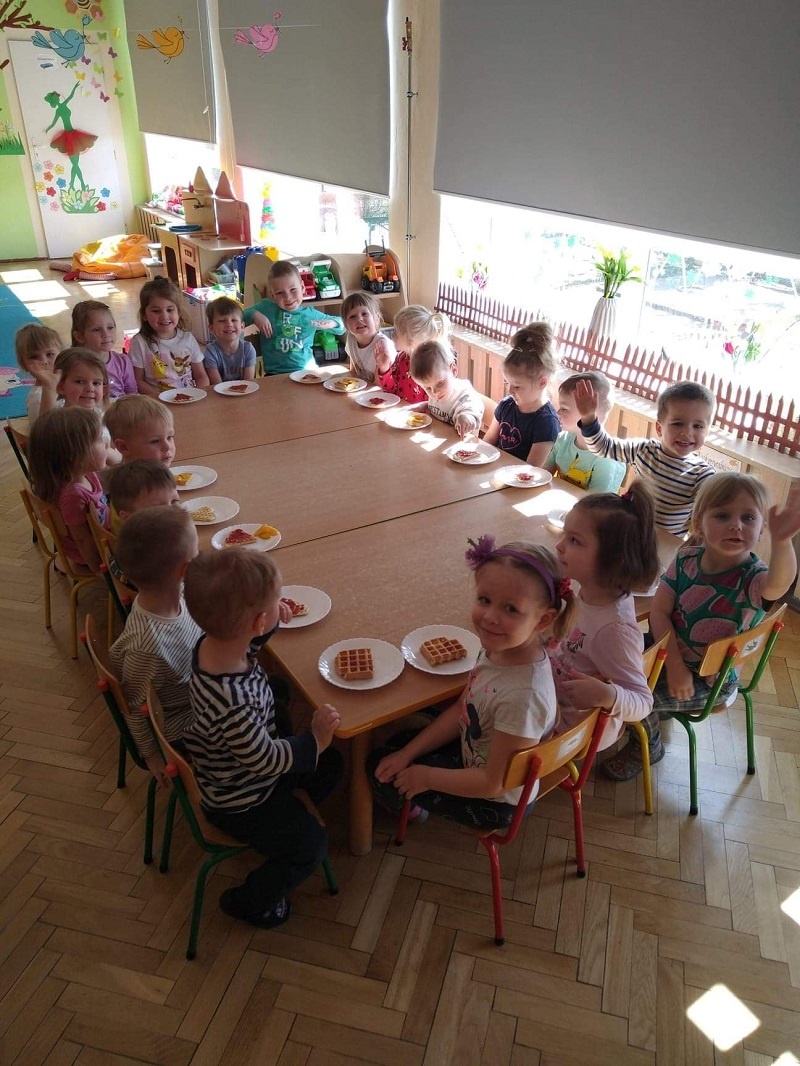 Wiosna to doskonały czas na aktywność ruchową i zdrowe odżywianie. Doskonale o tym wiedzą nasze przedszkolaki. Dzieci z grupy “Pszczółki” i “Świetliki” i “Biedronki” własnoręcznie robiły zdrowe smakołyki: koktajle owocowo- warzywne, sałatkę owocowa i gofry oczywiście z dużą porcją owoców. Starszaki umyły dokładanie ręce, posegregowały umyte owoce i zabrały się do robienia sałatki. Samodzielnie kroiły i przyrządzały sałatkę owocową przestrzegając zasad bezpieczeństwa przy posługiwaniu się nożem. Dzieci z grupy “Pszczółki” poznając tajemnicę warzyw i owoców postanowiły zrobić pyszny koktajle owocowo –warzywne pełne witamin. Przedszkolaki dzieliły się wrażeniami smakowymi, niektóre prosiły o dokładkę, a pani podkreślała wartości odżywcze koktajlu. Na deser pojawiły sie pyszne gofry, które przedszkolaki zrobiły własnoręcznie mieszając składniki. Kulinarne zajęcia kształtują pomysłowość i wyobraźnię, uczą zdrowego stylu życia, oraz zgodnej pracy w zespole. Zatem, korzyści wiele – nauka i wspaniała zabawa!